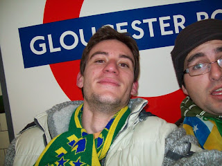 Londres foi completamente invadida pelos brazucas, em número, em alegria, em cor, em tudo. O metro já vinha verde e amarelo desde a primeira estação, e foi apertando até não mais. O Tuco ia enganando todo mundo, respondendo aos “é nóis” com um “valeu!” setubalense muito do aldrabado.